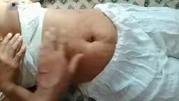 Hot aunty is ready to be fucked by a big dick. She strokes and licks the dick to lube it. Her boyfriend flicks her big and erect nipples to make her cunt wet. Her white bra is pulled up while her boyfriend sucks her boobs and fucked her at the same time.