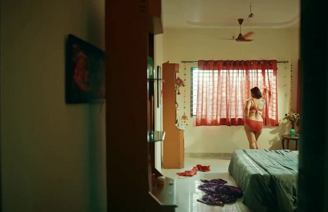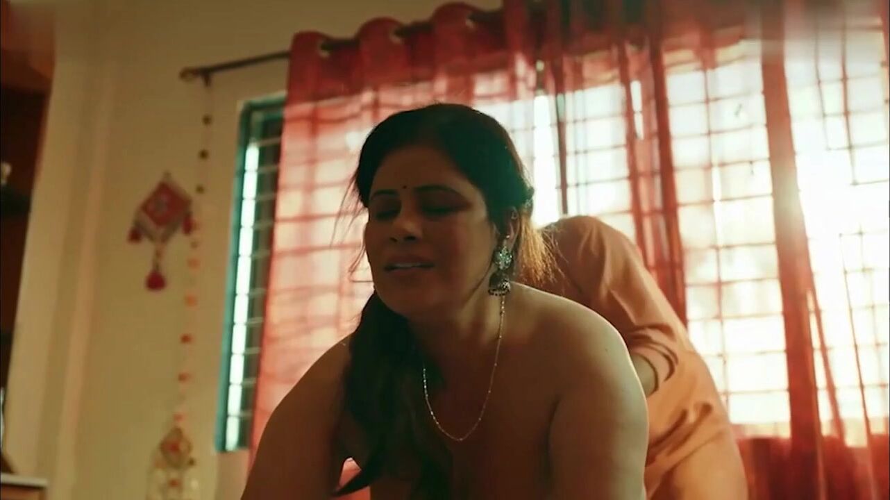 Watch a Desi XXX web series of a hot Telugu Aunty fucked by her lover. Aunty is already horny and wearing only her orange bra and panties while waiting for her lover. She has left the door open so that he can walk in directly. She starts by kissing him, and he kisses her all over her body. He makes her face the window while he bites her shoulder and takes off her bra. He kisses her thighs while she moans in pleasure by pressing her boobs. She then kneels, takes off his pants, and takes out his dick to suck. See how he dry humps her from behind as she removes her bra and holds her huge boobs. He bends her over the bed and fucks her like a bitch from behind. He then fucks her in the missionary position till they both cum in pleasure.
