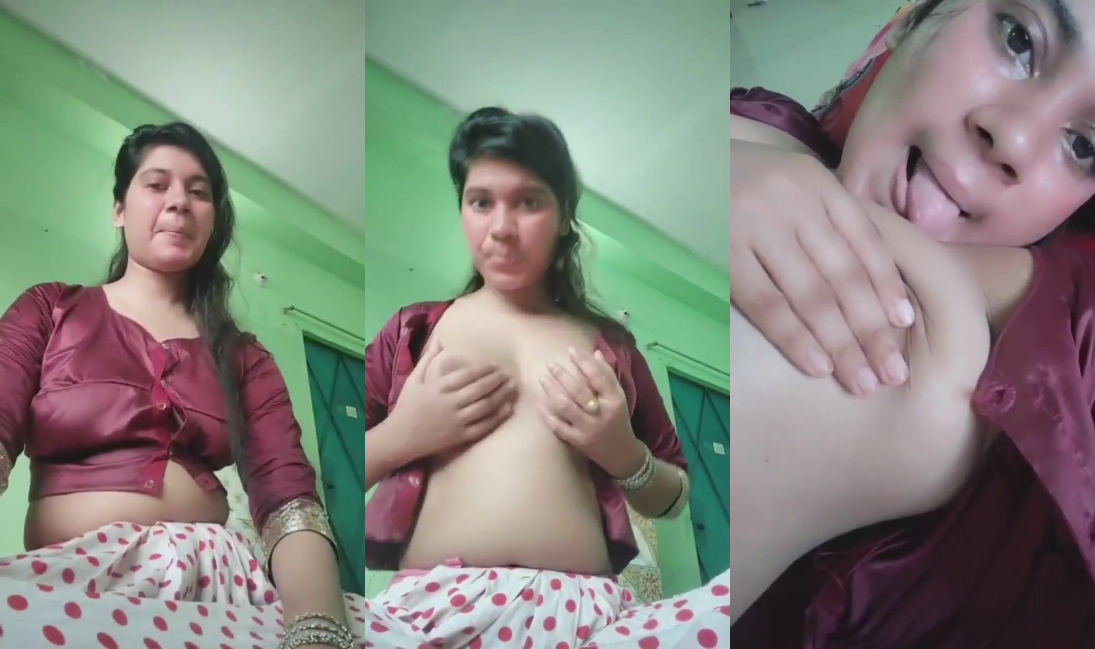 See a Hot Indian XXX MMS Clip of a horny girl pressing her boobs and pinching her nipples. With a Bollywood song playing in the background, she slowly removes her blouse. The flaps of the blouse are open, and she presses her boobs. She licks her nipples one by one and makes them wet. She shows her boobs from different angles by bending near the camera. She then shows a close-up of both her boobs and ends the video with a cute smile.