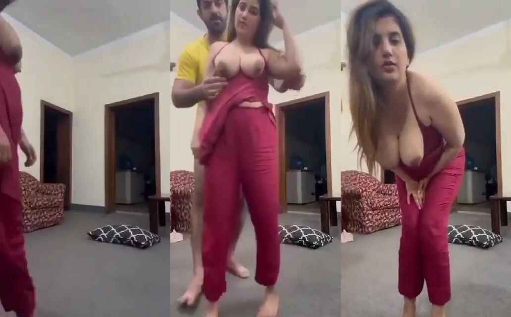 Horny Indian Aunty comes on the screen with her boobs hanging out of her sexy bra. See how she poses seductively in this erotic blue film. She is holding her boobs while her lover is jerking off. Her lover then stands behind her and presses her boobs and nipples. He makes her bend over for a better view of her boobs. Now she turns around and shows off her big butt.