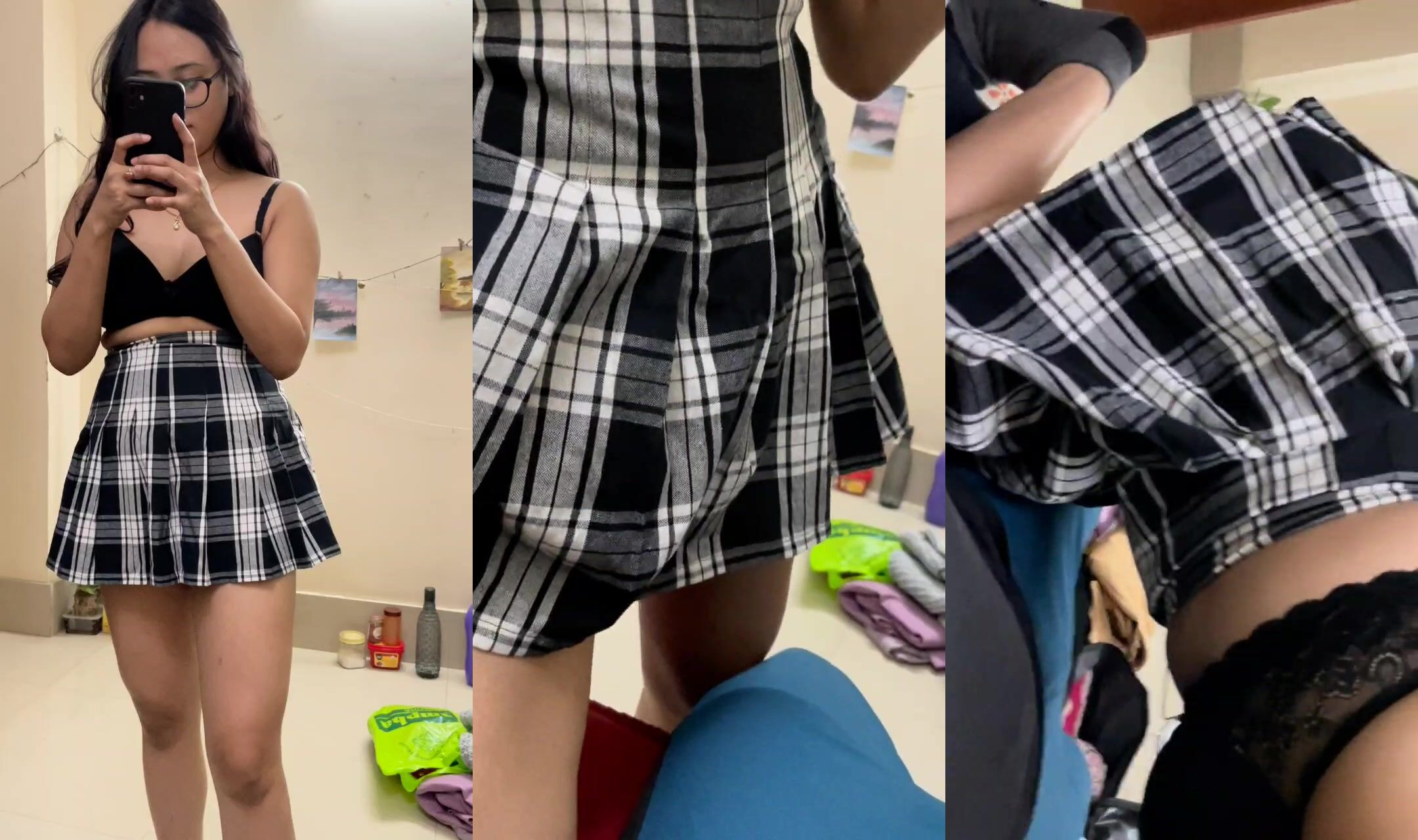 A PYT (Pretty Young Thing) is seducing her boyfriend in this porn MMS. See how she is swaying in a short skirt and a black bra, dancing to a popular English song. He lifts her skirt and pats her ass as she bends.
