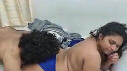 Mallu Aunty from Kerala is looking hot in her blue bikini. Her lover comes from behind and kisses her big ass in this video. Then he presses her boobs and pinches her nipples from over her boobs. He takes off her bikini top and kisses her back. She then holds his dick and sucks it as it has become hard. She blows his dick, taking it deep in her throat. She then lies on the bed while he licks her boobs and hugs her tight. Then the horny lover removes her thong and thrusts his dick in her pussy from behind. You can see his balls slamming against her thighs till he cums on her ass.