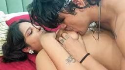 Enjoy a Porn MMS XXX video of an Indian chick fucked by her lover. See how a young couple start by kissing in a passage and ends up fucking in the bedroom. See how he lifts her and takes her to the bedroom. He unzips her one-piece dress and removes it. He also takes off his shirt. Both of them have sexy tattoos on their bodies. He kisses her boobs and turns her to kiss her back. Then she takes off his jeans and makes him naked. She holds his dick for some time and then gives him a surprise. She pours some honey on his chest and licks it. Then she pours honey on his dick and sucks it. You can see the pleasure on his face as she sucks his dick like a lollipop. She then climbs him in the cowgirl position and humps his dick. See her big ass moving while she jumps on his dick. He then gets up and thrusts his dick in her pussy in the missionary position. He pushes both her legs up and fucks her pussy. He then bends her into doggy position and fucks her from behind. See how he cums on her ass in the end.