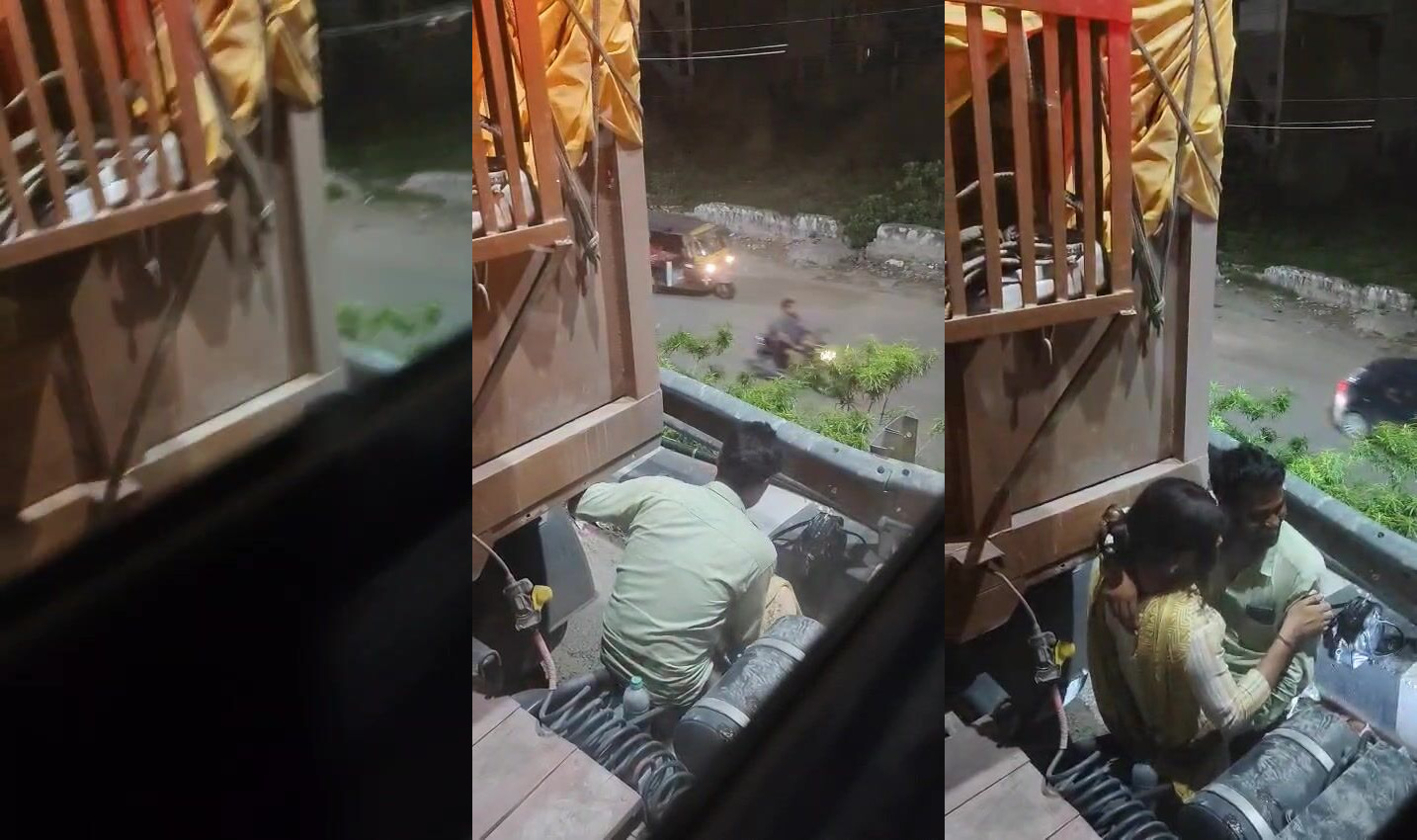 A horny Desi Bhabhi is sucking her lover’s dick on top of a truck on the highway. The video has gone viral as people are shooting it from a bus where they can clearly see them having sex. Instead of stopping or hiding, the guy is now fucking her as she has taken off her salwar. Both of them give dirty gaalis to the people who are looking at them as they continue fucking.
