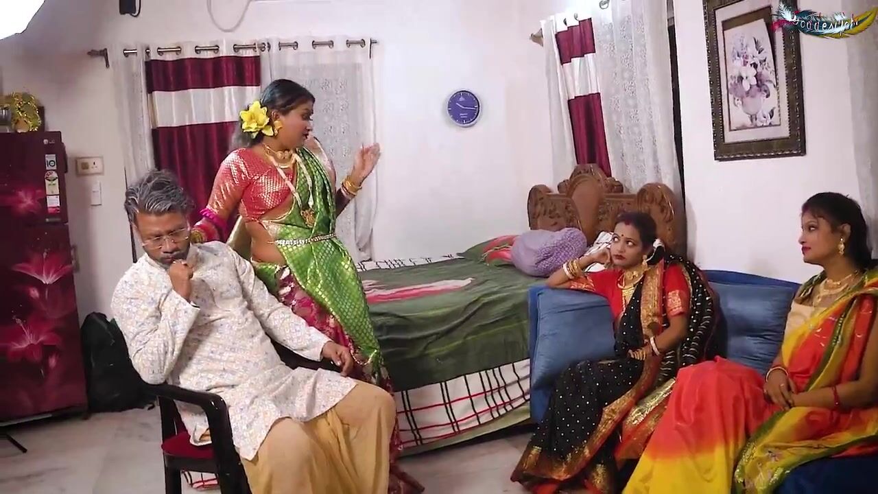 Watch how this tharki buddha fucks 3 young women. All the hot bhabhis are dressed like dulhans for their suhagraat. Erotic video of babes wearing wedding  jewellery and fucking in a foursome.